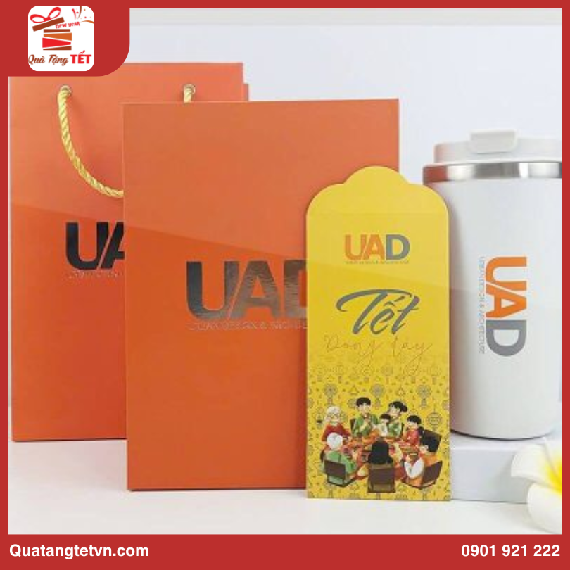 Ngoài tính ứng dụng, bộ giftset ly giữ nhiệt kết hợp bao lì xì chính là món quà đậm chất Tết nhất. Ly giữ nhiệt tiện lợi cho cả năm, còn bao lì xì mang nét văn hóa truyền thống đặc trưng của ngày xuân. Doanh nghiệp có thể tùy chỉnh thiết kế bao lì xì theo tone màu thương hiệu hoặc chủ đề Tết của năm, giúp bộ quà vừa phù hợp văn hóa, vừa tạo cảm xúc ấm áp cho người nhận. Đây là lựa chọn tuyệt vời để gửi gắm lời chúc may mắn – tài lộc đến đội ngũ nhân viên.